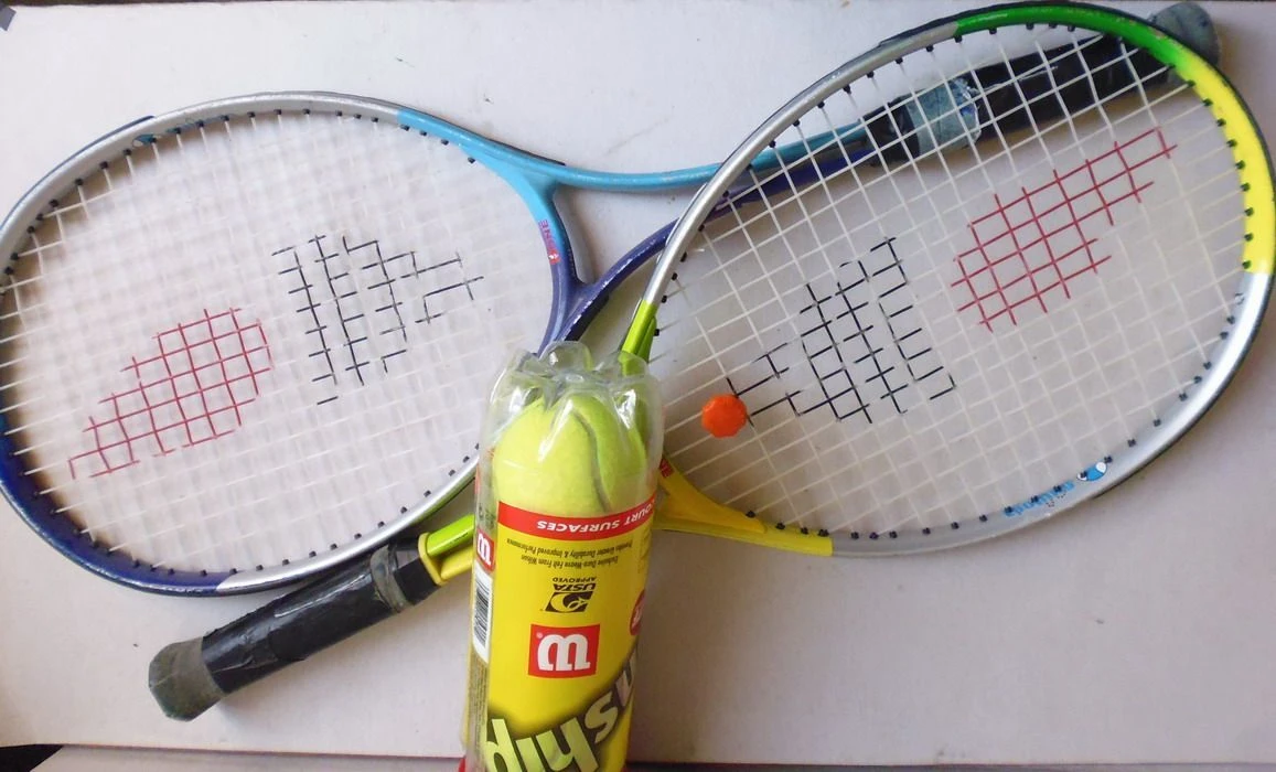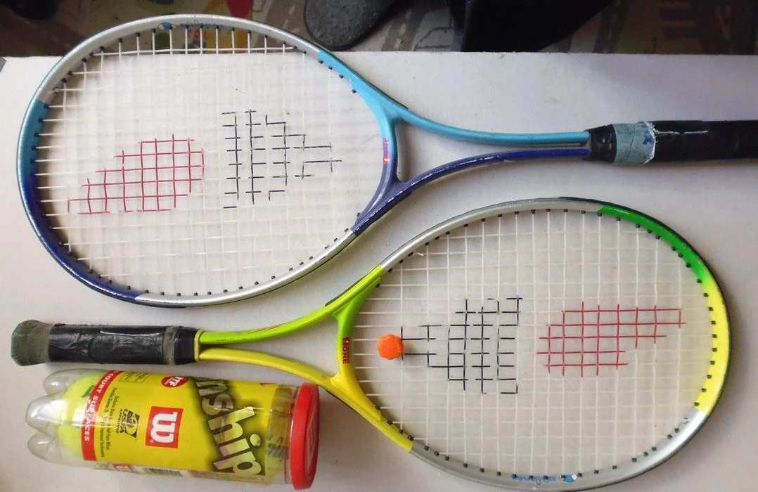 2 ρακετες τενις ελεφρα μεταχειρισμενεςκαι 3 μπαλακια εντελως καινουρια στη συσκευασια τους σφραγισμενα