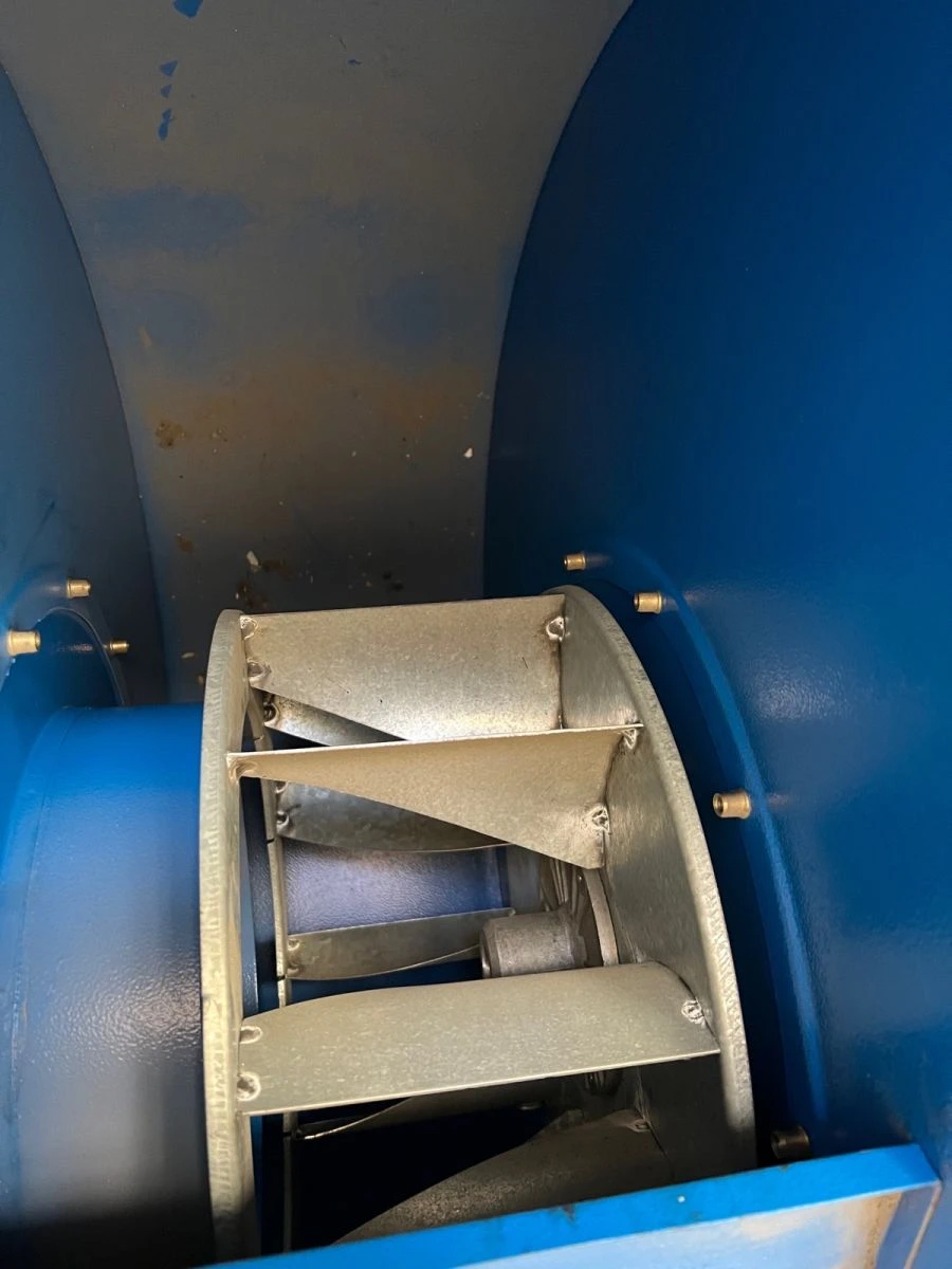 Φτερωτή με αραιά φαρδιά πτερύγια (κουταλοειδή), κατασκευασμένη από γαλβανισμένο χαλυδοέλασμα, στατικά και δυναμικά ζυγοσταθμισμένη