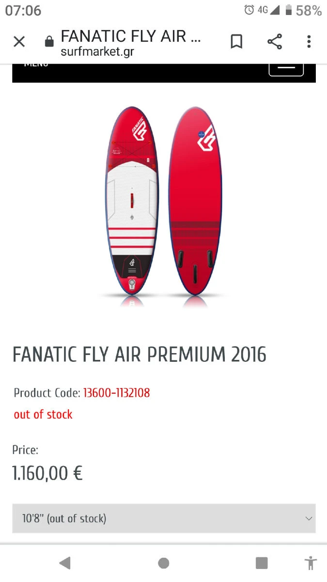 Fanatic Fly Air Premium 10.8′ Sup windsurf Sup σε πάρα πολύ καλή κατάσταση, με ελάχιστη χρήση. Υποδοχή για windsurf Rig.