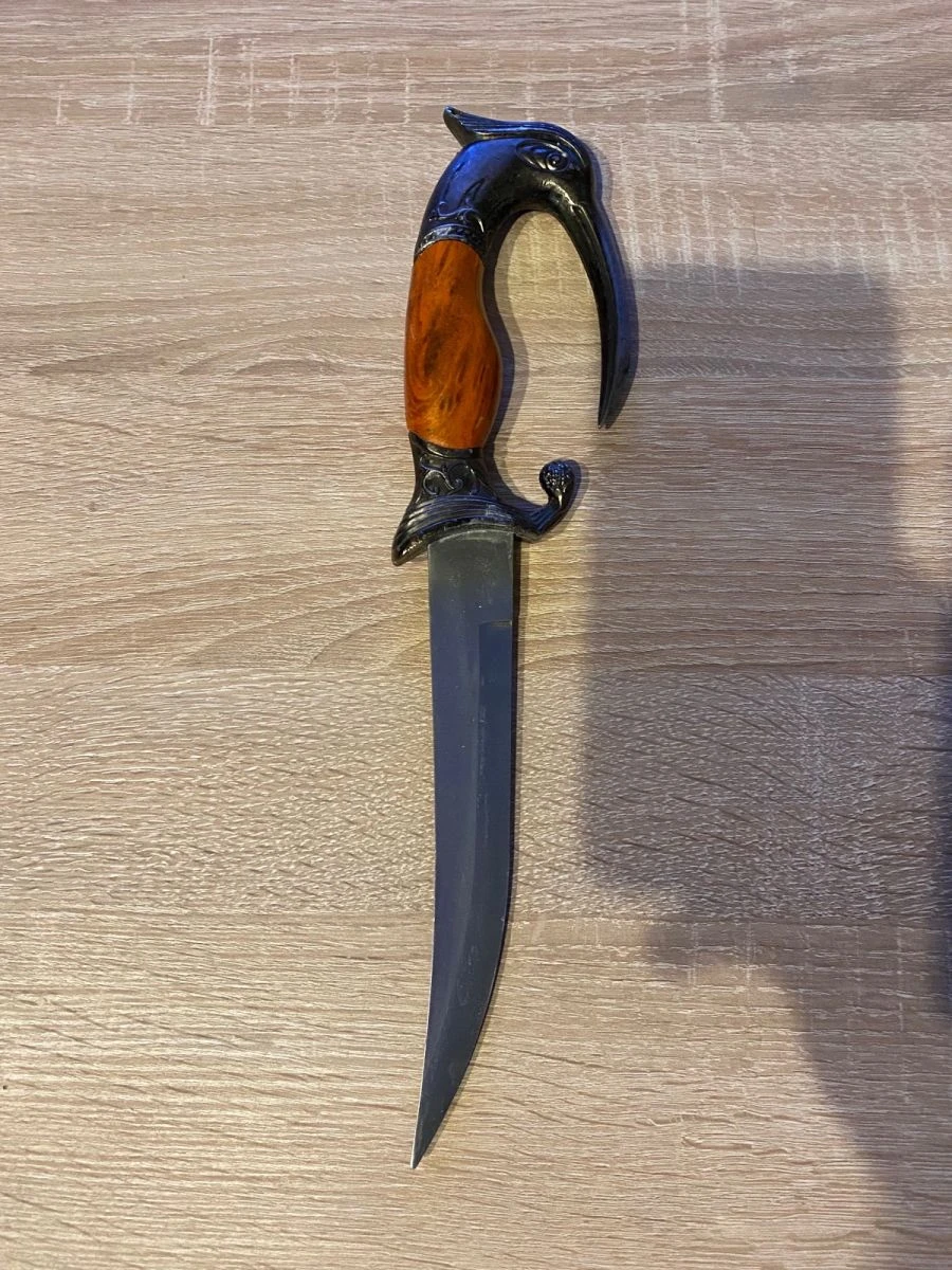 Πωλείται μαχαίρι από προσωπική συλλογή σε άριστη κατάσταση, συνολικού μήκους 35 εκατοστών και με 18.5 εκατοστά μήκος λάμας.