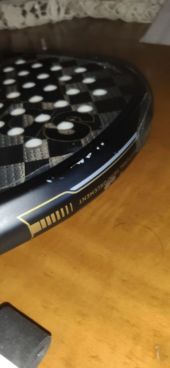 Σημείωση: Η ρακέτα όπως φαίνεται στη δεύτερη φωτογραφία εχει φύγει λίγο το χρώμα στην άκρη το οποίο μπορεί να καλυφθεί με ένα σπρέι ματ.