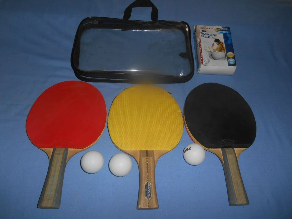 3 ρακέτες και ένα κουτί με μπαλάκια