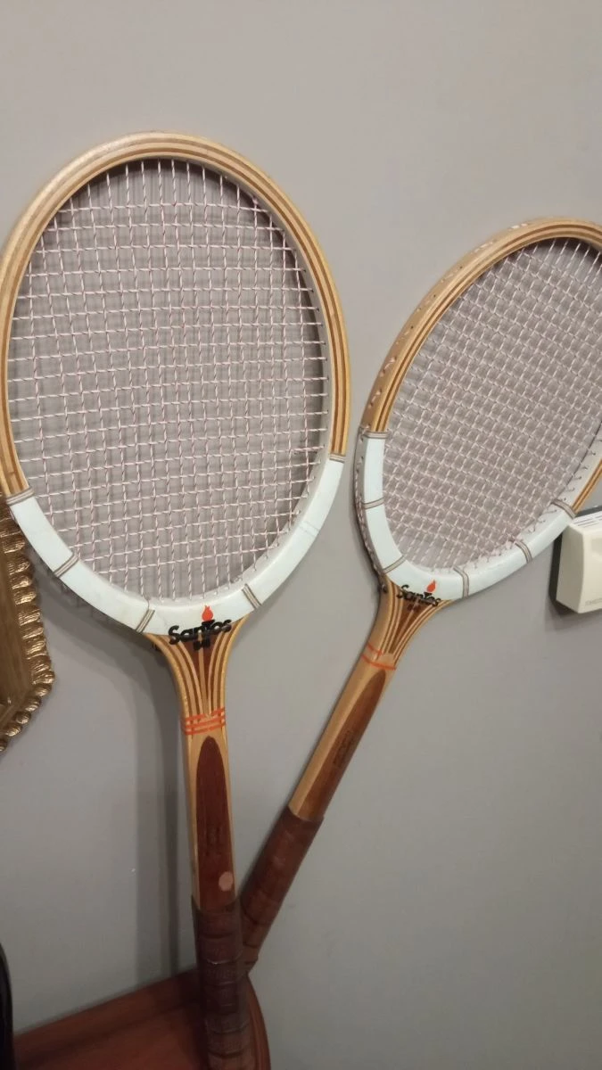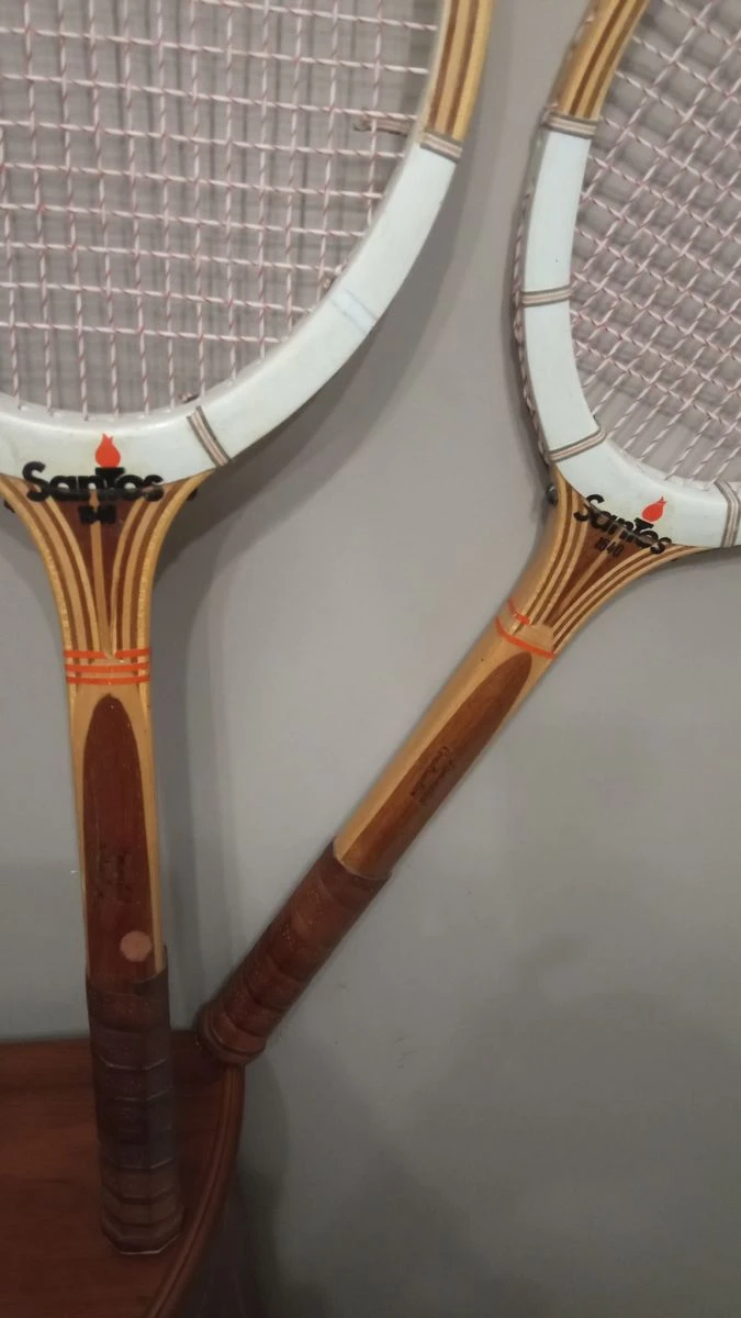 Συλεκτικές ρακέτες τένις * Santos* δεκαετίας ’80 .Είναι ξύλινες σε πάρα πολύ καλή κατάσταση .Η τιμή αφορά την μία .Αγοράζοντας και τις δύο η τιμή αλλάζει .