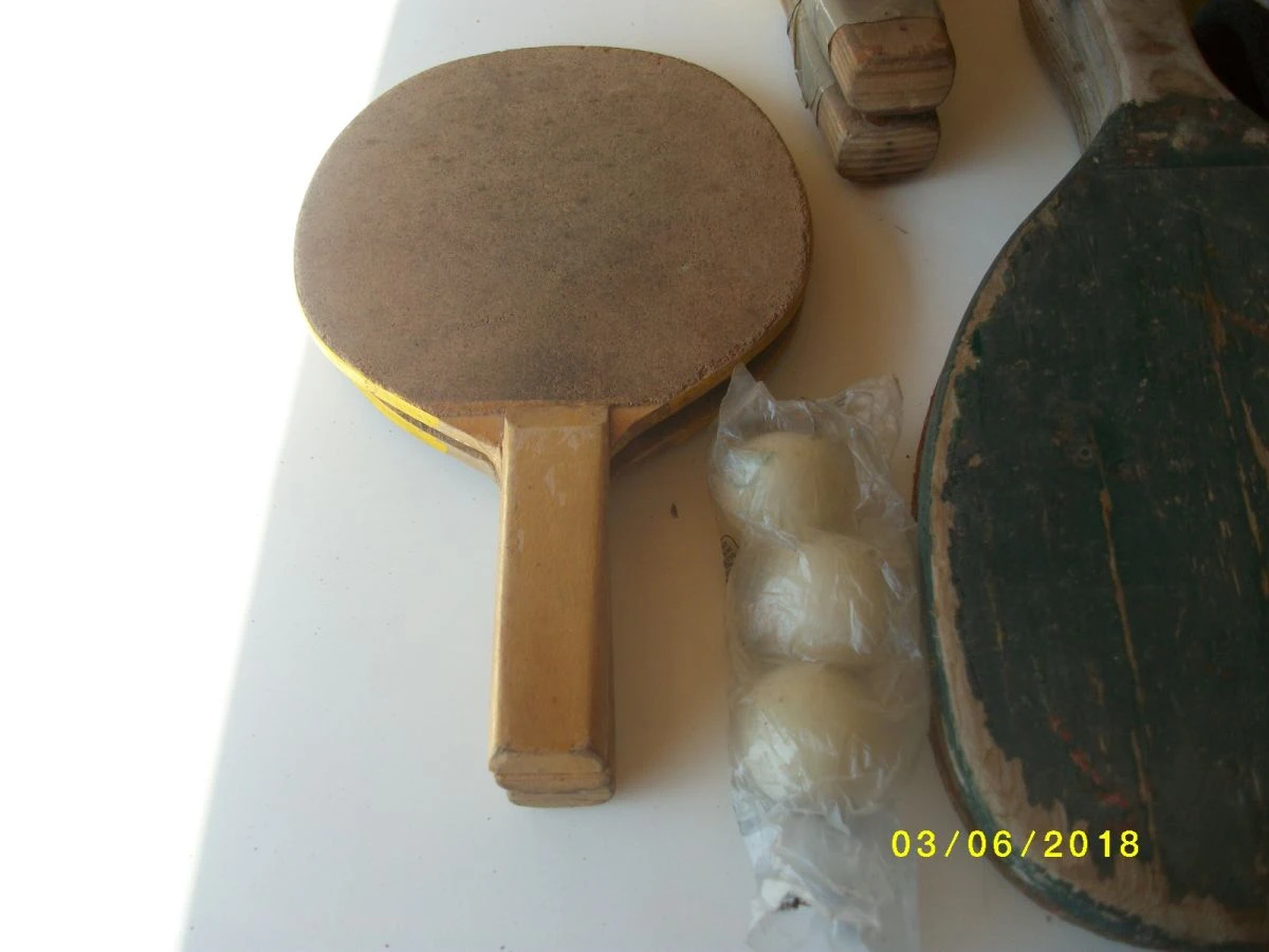 πωλουνται και 2 ρακεττες πιγκ πογκ,ξυλινες με επικαλυψη επιφανειων κρουσεως με φελλο,καθως και 3 μπαλλακια καινουργη,αυτα ολα μαζι,δηλ 5 τεμαχια πωλουνται 5 €.