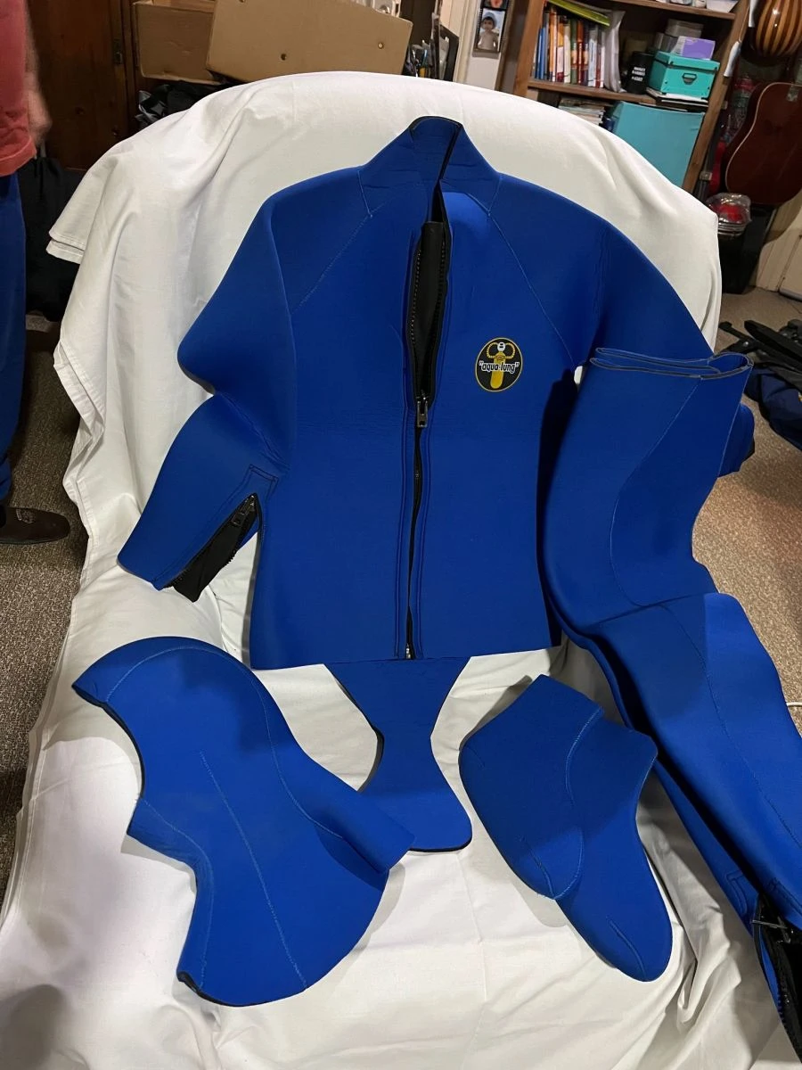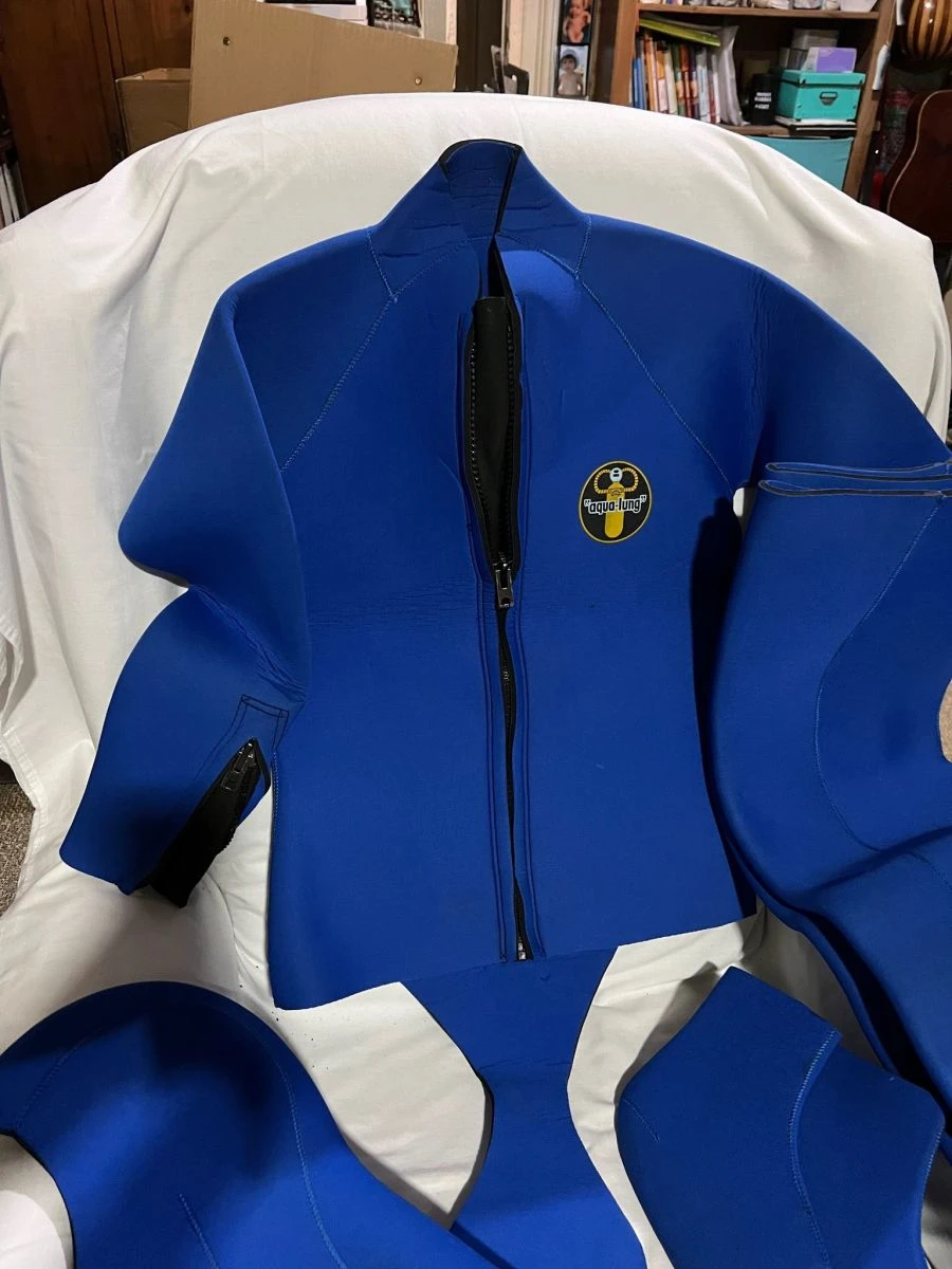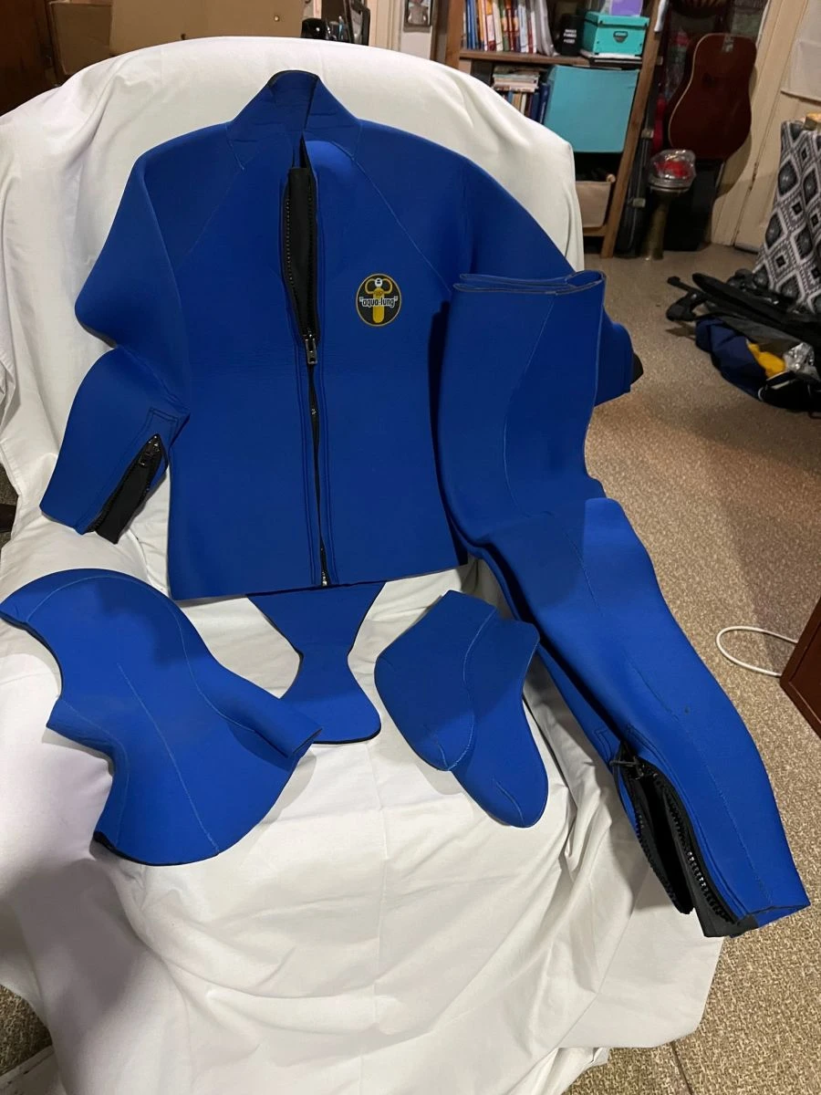 Πωλείται στολή κατάδυσης μάρκα Aqua iung πάχους 7 mm μέγεθος (S),για άτομο ύψους 1.70-1.75 διπλόφοδρη χρησιμοποιημένη μόνο μία φορά. Αποτελείται από σακάκι, παντελόνι, μποτάκια και κουκούλα.