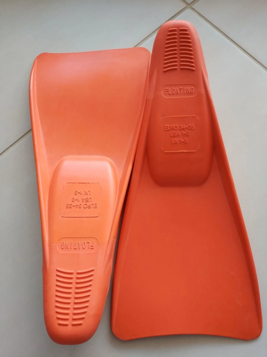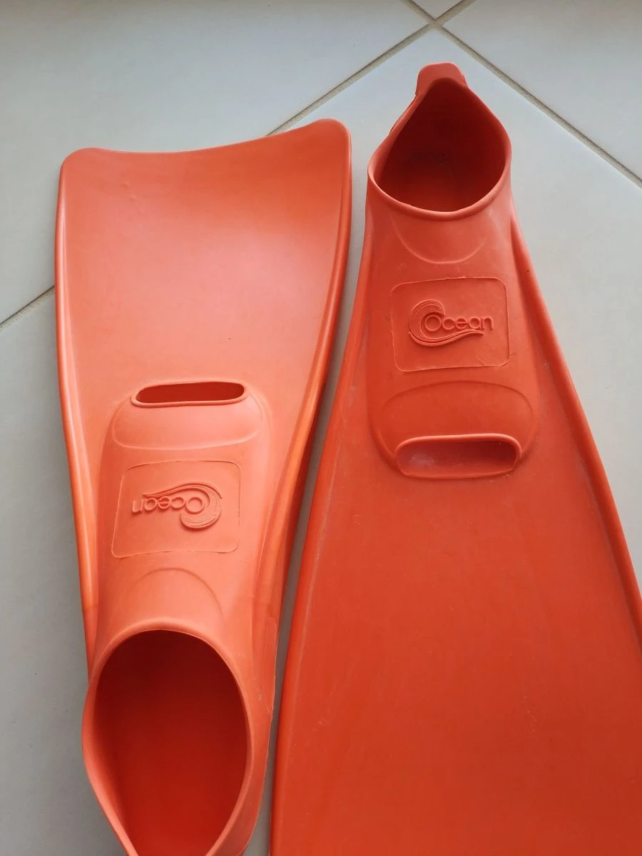 Βατραχοπέδιλα Ocean Καουτσούκ Πορτοκαλί Νο 34-35 (USA 1-3 UK 1-3) για κολυμβητήριο. Σχεδόν αφόρετα. Κατασκευασμένα από καουτσούκ (μαλακό υλικό). Δεν τραυματίζει το πόδι και είναι εύκολα στο να τα φορέσετε.