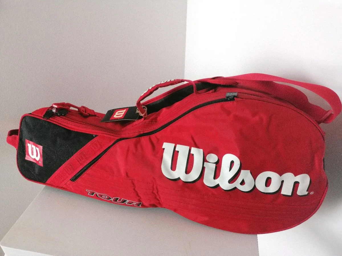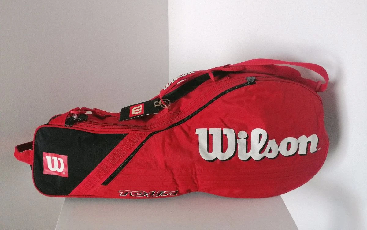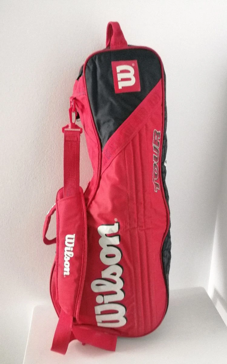 Vendora Vintage Wilson Tour Tennis Bag Red Shoulder Strap Racquet 1 εξωτερική τσέπη
