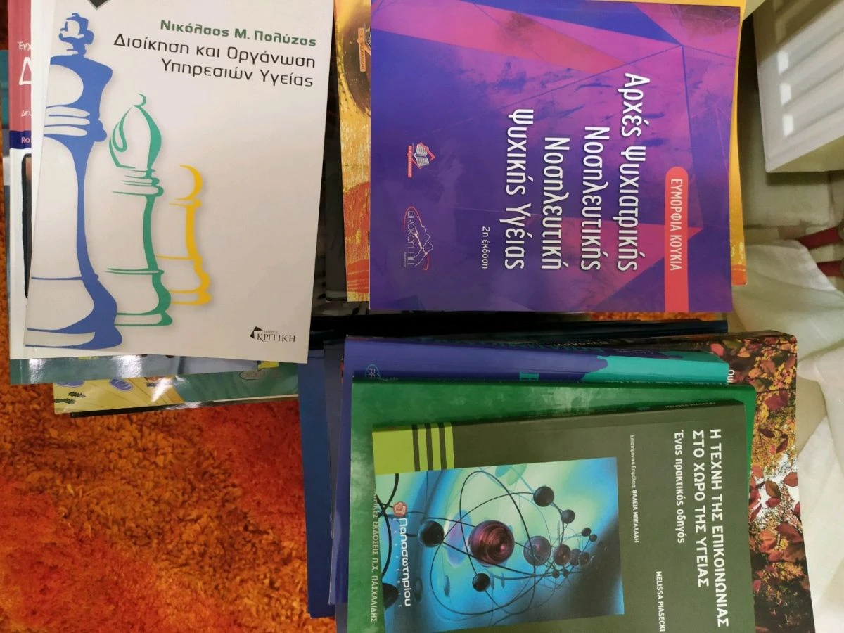 38 Βιβλία Νοσηλευτικής Επιστήμης σε άριστη κατάσταση αχρησιμοποίητα και καθαρά από σημειώσεις. Τα βιβλία διαθέτουν μαλακό εξώφυλλο με εξαίρεση 3 βιβλία τα οποία διαθέτουν σκληρό εξώφυλλο. Όλα τα εξώφυλλα είναι σε πολύ καλή κατάσταση!